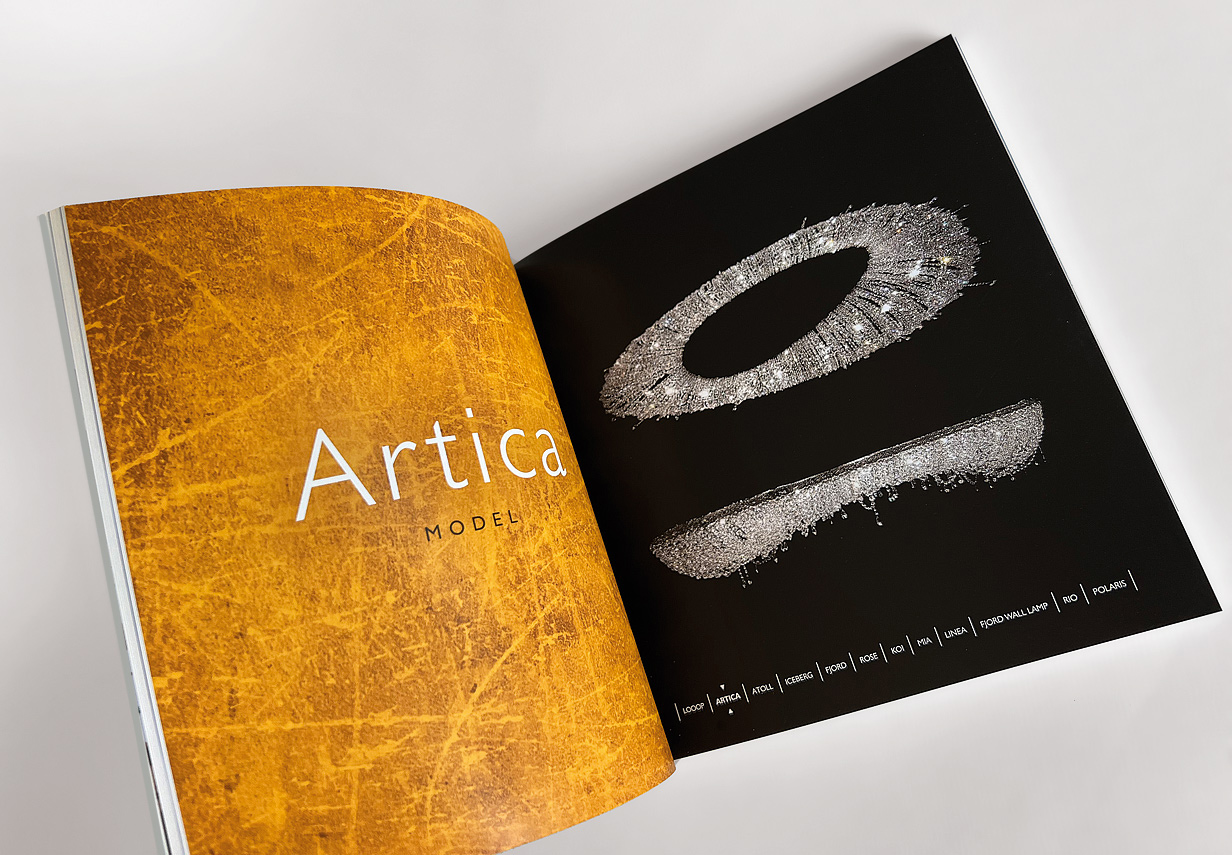Designer kristálycsillárok termékkatalógusának tervezése